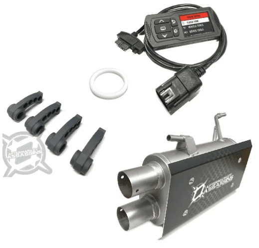 Lock and load your Kawasaki KRX 1000 and get ready for some serious kick!  The KRX 1000 is a great machine, but Kawasaki left a ton of room for improvement on the table.  This simple kit is the best way to wake up your KRX 1000 as it comes with our proven ECU tunes which are loaded via the DynoJet Power Vision 3 ECU tuner.  The tunes add some amazing horsepower from low-end to high-end RPM and really give your machine that “snap” you’re looking for. Our AA Stage 2 clutch kit compliments the tuning perfectly by more efficiently transferring power to the wheels and ridding yourself of the very lazy factory clutching setup. We finish the kit off with the AA KRX slip-on exhaust. This exhaust is just what your machine needs!  We set out to produce an exhaust that looks great, sounds great, and has adjustable sound levels. For more information on the exhaust features and options please follow the link below.