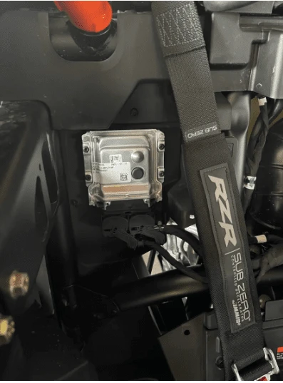 - The ECU is located behind the passenger (rear passenger if 4 seat) seat. Remove the top panel behind the seats, then remove the fabric panel to expose the ECU. Â Remove the Torx bolts and ECU connectors.