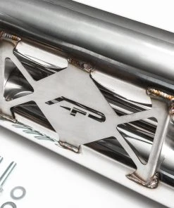 The system is built from T304 stainless steel and features precision TIG welds. The dual high-flow resonators are secured in place with a laser-cut cradle that features the AP logo. The type of resonators used can be seen in many of the Agency Power high-performance vehicle exhausts, which on turbo cars, produce a beautiful sound. Designed as a direct replacement, the Agency Power exhaust uses the factory hanger locations and bolts up to the stock turbo pipe without modifications. The exhaust features a thick flange and includes a new gasket with hardware.