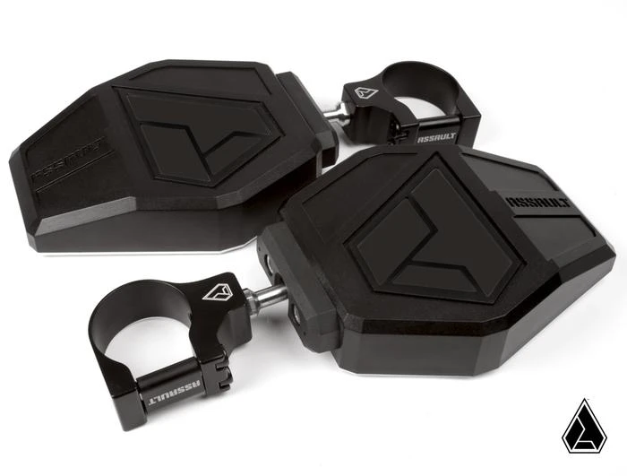 The Aviator mirrors feature Assault Industries signature clamps which allow mounting to 1.5″, 1.75″, 1.875″ (Can-Am Maverick X3), and 2″ roll bars. The break-away design helps to prevent crushing damage to the mirror by allowing it to fold away on impact. Powder-coated aluminum bezels are available to add a pop of color to match your UTV, while the sticker pack gives some color to the front of the mirror! The Assault Industries Aviator side mirrors come with a limited lifetime warranty.