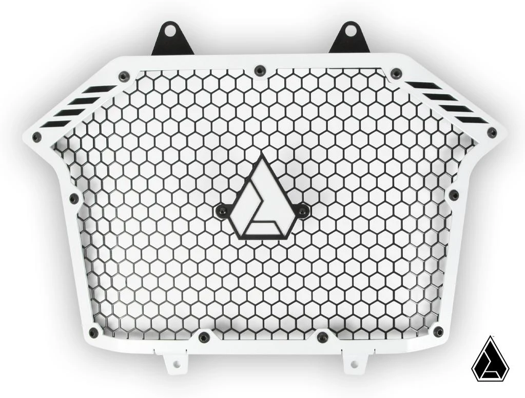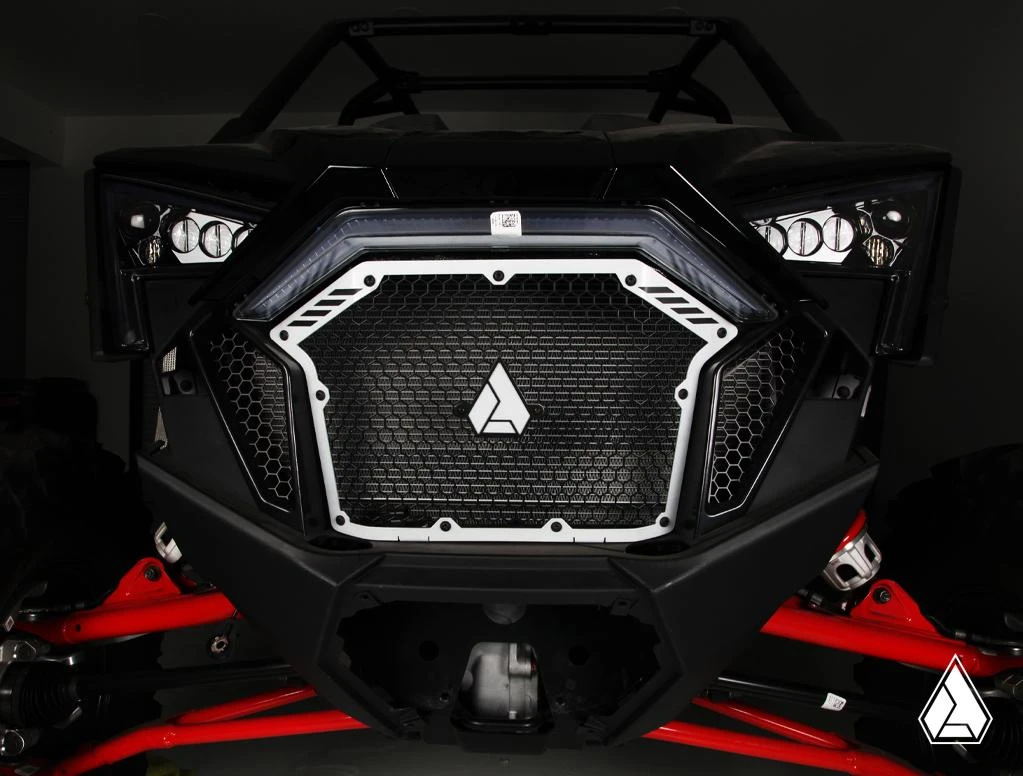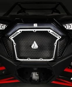 The Assault Industries Stinger Front Grill for the Polaris RZR Pro XP offers unique styling and quality with the aggressive sporty design. The Stinger grill is available in frost silver with black mesh and also comes with black side grills!