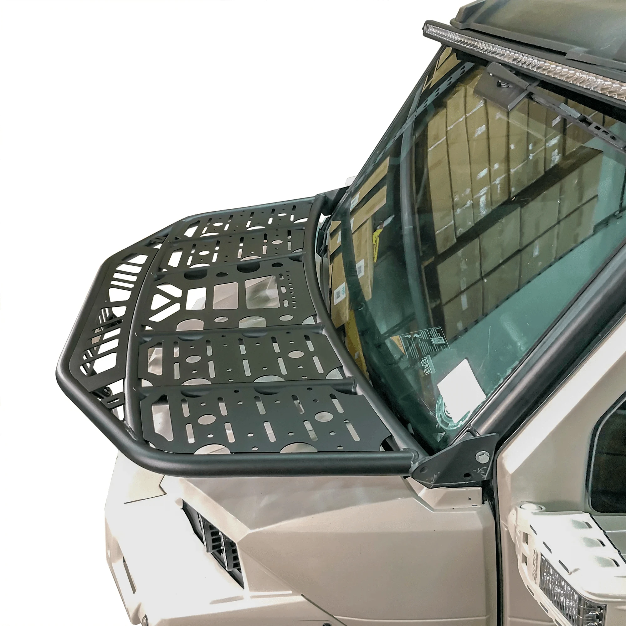 Whether you are ranching, hunting, or working the DRT Ranger Hood Rack provides more useable storage space and endless tie-down options. The DRT RNGXPHR1 is built with a load rating of 350lbs. The DRT Ranger hood rack comes in the DRT Signature Sand Black Powder Coated finish.