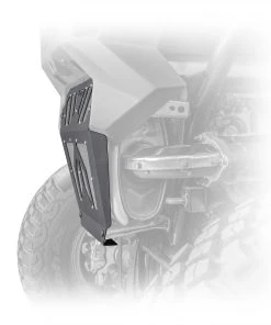 The DRT Motorsports Polaris RZR Pro XP Exhaust Cover is a great upgrade for aggressive styling, more clearance, and better cooling for your Pro XP. The DRT Pro XP Exhaust Cover replaces your factory plastic exhaust cover with a vented aluminum cover that fits closer to the frame. The DRT RZRPROEC1 is laser cut and powder coated in the DRT sand texture black.