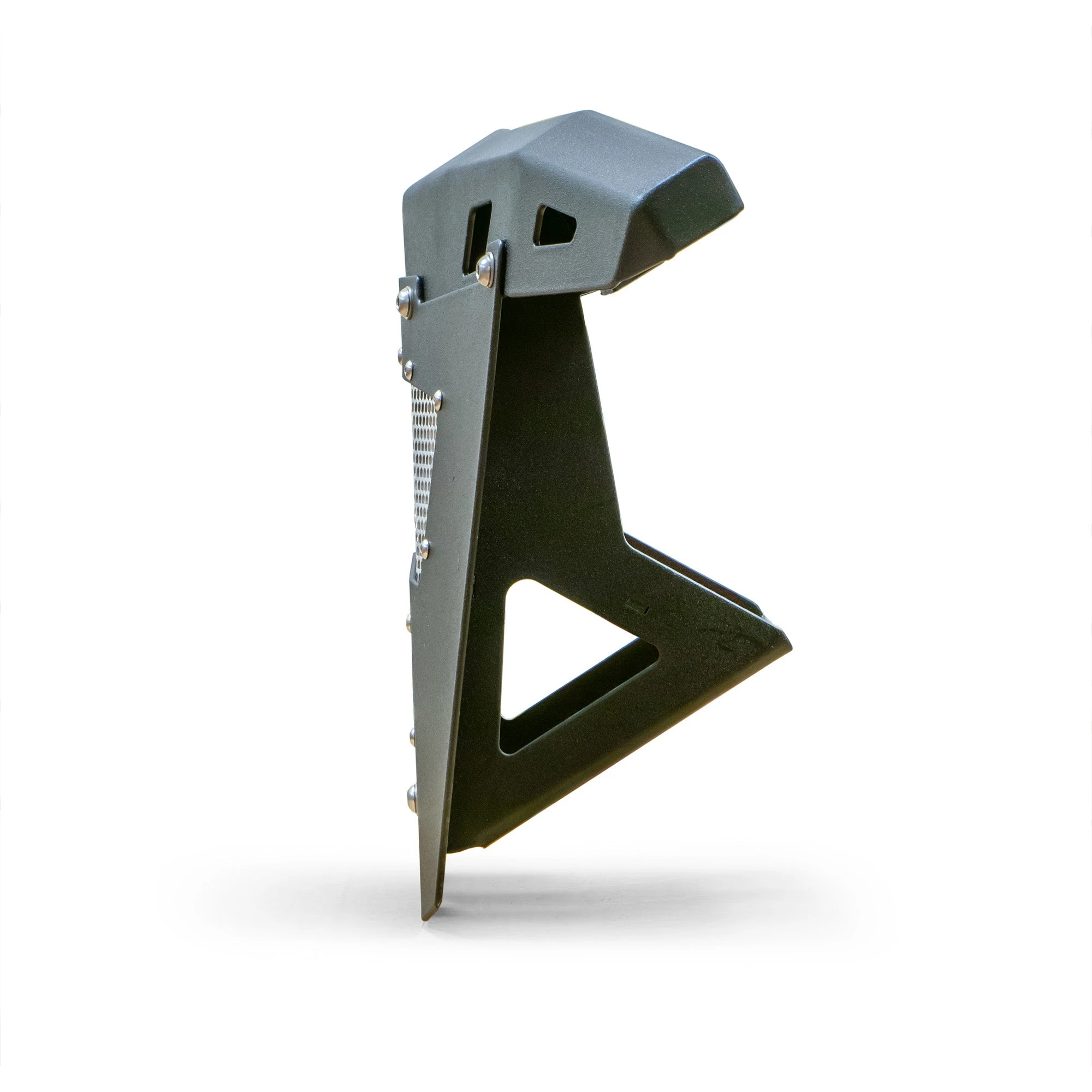- Powder-coated textured black with bolt-in raw aluminum mesh grills that remove easily for color matching