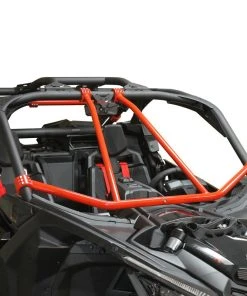 Can-Am Maverick X3 Front Intrusion Bar. Factory UTV offers this easy bolt-on Front Intrusion Bar for the Full line of Can Am Maverick X3 Models. Helps provide maximum support and protection against objects from entering the cockpit while adding stability and style! Welded steel construction easily bolts to existing Maverick X3 OEM Roll Cage. Lightweight tubular design constructed from 1 in V-Bars attached to 1-13/4 in Cross bar using steel collars and stock mounting locations. Powder coated black and made in the USA! This makes a great addition to the Can-Am Maverick X3. Easily mount accessories and other tube mountable items to the intrusion bar, or even a race mesh to the front of the intrusion bar for ultimate protection against debris, without restricting your airflow and leaving your vulnerable in the center with just a full windshield.