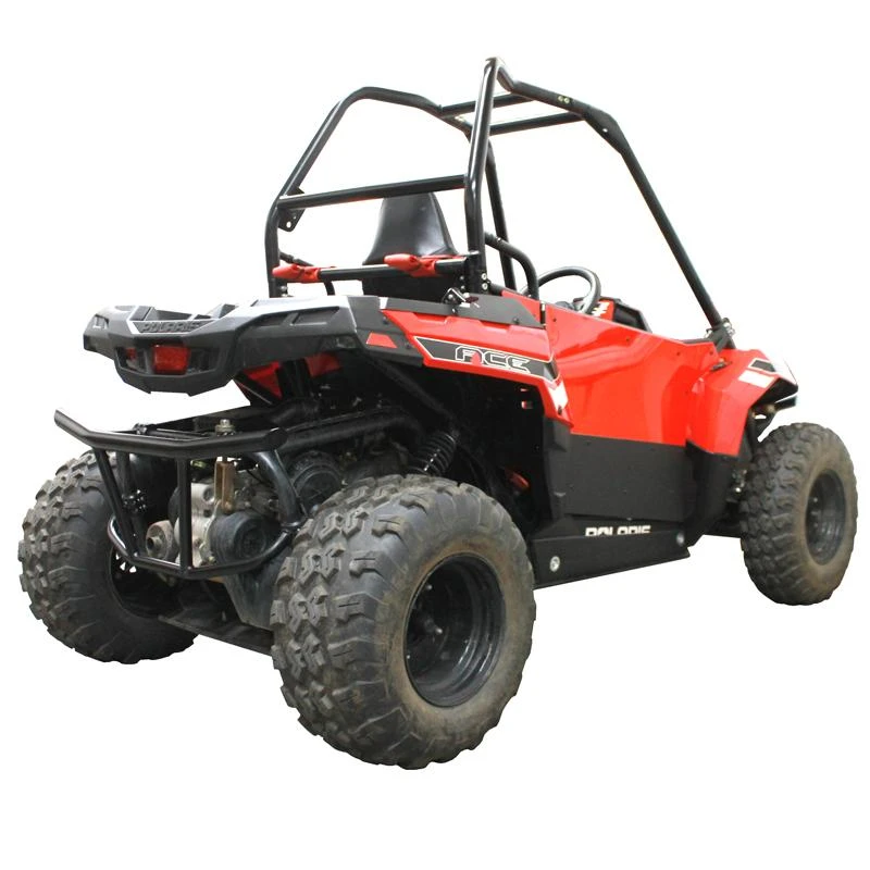 Factory UTV offers full rear bumper protection for your Polaris Ace 150 or Polaris Ranger 150. Protect your 150 Rear plastic from being destroyed on a trail impact. Constructed from mild steel tubing to keep weight down while maintaining strength and durability and powder coated with a durable black finish. Bumper mounts in 4 spots using existing mounting locations on the Polaris Ace 150, no modifications necessary. Bumper comes with all necessary hardware. This is a great looking customization for your Polaris RZR Ace 150!