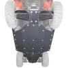 Factory UTVβs UHMW Skid Plates are the gold standard for UTV protection systems. OEM skid plates simply do not satisfactorily protect the underside of your UTV under normal off road operation. With items as important as your fuel tank and hydraulic lines right above the skid plates an alternative to the OEM skids is imperative for fun and safe off roading. Factory UTV has the answer with skid plates constructed from UHMW (Ultra-High Molecular Weight) plastic. Significantly lighter than aluminum, FUTV skids and A-Arm guards offer full protection for the undercarriage of your UTV. UHMW is tough, wear resistant plastic that combines an incredibly low coefficient of friction with outstanding impact strength, and will outwear carbon steel 10 to 1. Unlike aluminum, UHMW also has memory, meaning after a big impact hits aluminum will bend ,gouge and break while UHMW maintains itβs original shape. These skid plates are very TOUGH! Protect your investment today!