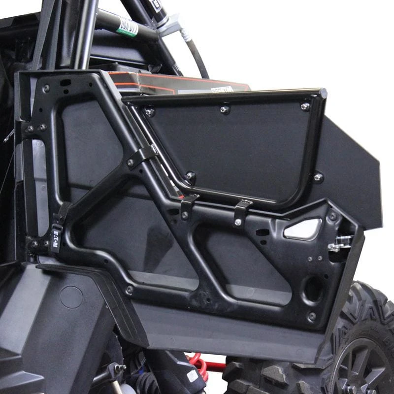Door Inserts for the Polaris RZR RS1 constructed from a powder-coated mild steel tube frame and plastic skins. We use a top quality thermoplastic high-impact polypropylene which offers a high-gloss finish with excellent durability and is available in several colors. Why pay double for the OEM insert offerings when you can have quality made in the USA products from Factory UTV. While not designed to be water tight, these inserts do help a great deal in protection from from the elements and greatly enhance the RZR’s looks. These door inserts are a quality upgrade for your RZR RS1. Count on Factory UTV Accessories, your number 1 UTV accessory supplier.