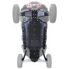 Reinforces rear skid plate to limit impact flexing in vital areas.