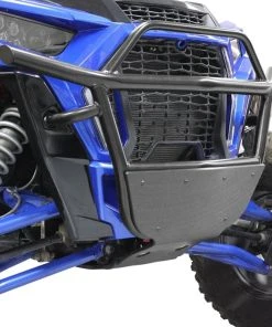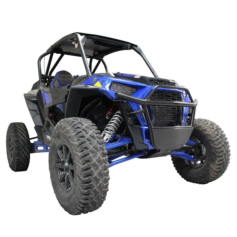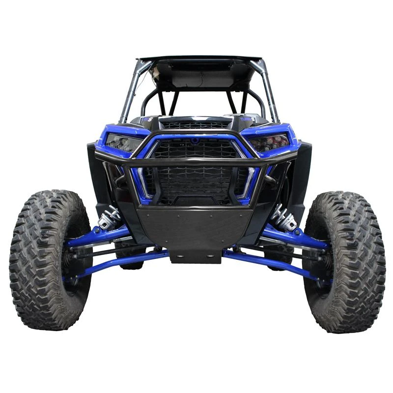 Constructed from steel tubing, this bumper features an industry first full wraparound UHMW bash plate. Bash plate protects that vulnerable leading edge. The bumper has mounting provisions for a 2 small lights or 1 10″ LED light bar. Powder-coated black. the bumper mounts to existing mounting locations and provides excellent protection for your Polaris RZR XP Turbo S. Add protection to the front of your Turbo S while improving the looks at the same time.
