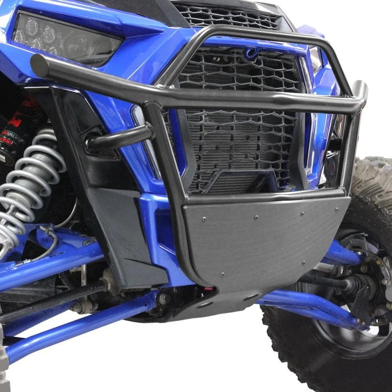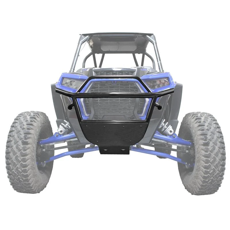 Constructed from steel tubing, this bumper features an industry first full wraparound UHMW bash plate. Bash plate protects that vulnerable leading edge. The bumper has mounting provisions for a 2 small lights or 1 10″ LED light bar. Powder-coated black. the bumper mounts to existing mounting locations and provides excellent protection for your Polaris RZR XP Turbo S. Add protection to the front of your Turbo S while improving the looks at the same time.