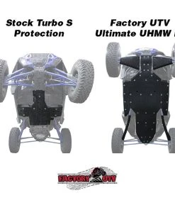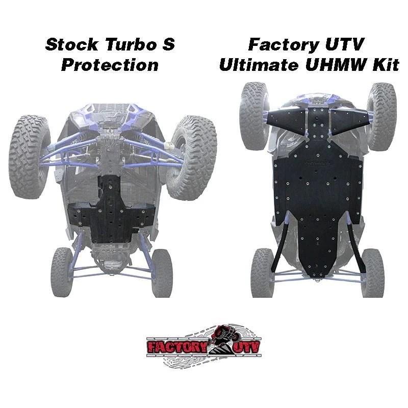 Factory UTV’s UHMW Skid Plates are the gold standard for UTV protection systems. OEM skid plates simply do not satisfactorily protect the underside of your UTV under normal off road operation. Our Factory UTV Polaris RZR XP Turbo S UHMW Skid Plate Package protects your assets and your investment. UHMW (Ultra-High Molecular Weight) plastic is significantly lighter than aluminum, FUTV UHMW skids and guards offer the best protection available for the undercarriage of your UTV. These are the same protection products used to help racers win just about every major Pro UTV off road race in 2015 including the: 2017 King of Hammers, 2017 UTV World Championship , 2017 Mint 400, 2017 Silver State 300, 2017 Baja 500, 2017 Baja 1000 and every round of the 2017 GNCC Series XC1 Pro UTV Class