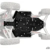Factory UTV’s UHMW Skid Plates are the gold standard for UTV protection systems. OEM skid plates simply do not satisfactorily protect the underside of your UTV under normal off road operation. Our Factory UTV Polaris RZR XP 1000 UHMW Ultimate Skid Plate Package protects your assets. We’ve also added an X-Brace option under the engine/trans area of the RZR XP. “ ½” or 3/8” UHMW rear skid with an 1/8” inch 6061 high strength aluminum backing plate, X brace aluminum backing plate is installed in between UHMW skid and chassis frame, and limits the amount of impact absorbing skid plate flex in the rear vital areas. If your going to play hard in your RZR XP, you’ll need the added X-Brace protection. You save when you purchase the Ultimate Package which includes Main Skid, A-Arm Guards, Trailing Arm Guards and Rock Sliders. UHMW (Ultra-High Molecular Weight) plastic is significantly lighter than aluminum, FUTV UHMW skids and guards offer the best protection available for the undercarriage of your UTV.