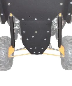 Factory UTV’s UHMW Skid Plates are the gold standard for UTV protection systems. OEM skid plates simply do not satisfactorily protect the underside of your UTV under normal off road operation. Our Factory UTV Polaris RZR XP 1000 UHMW Ultimate Skid Plate Package protects your assets. We’ve also added an X-Brace option under the engine/trans area of the RZR XP. “ ½” or 3/8” UHMW rear skid with an 1/8” inch 6061 high strength aluminum backing plate, X brace aluminum backing plate is installed in between UHMW skid and chassis frame, and limits the amount of impact absorbing skid plate flex in the rear vital areas. If your going to play hard in your RZR XP, you’ll need the added X-Brace protection. You save when you purchase the Ultimate Package which includes Main Skid, A-Arm Guards, Trailing Arm Guards and Rock Sliders. UHMW (Ultra-High Molecular Weight) plastic is significantly lighter than aluminum, FUTV UHMW skids and guards offer the best protection available for the undercarriage of your UTV.