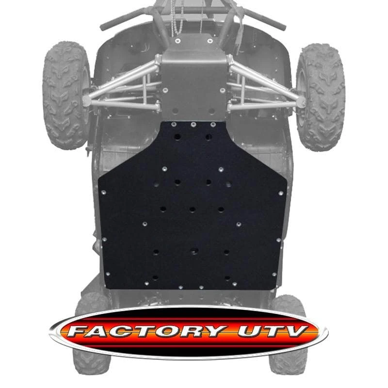 Factory UTV has the answer with skid plates constructed from 3/8 inch UHMW (Ultra-High Molecular Weight) plastic. Significantly lighter than aluminum, FUTV skids and A-Arm guards offer full protection for the under carriage of your UTV. OEM skid plates simply do not satisfactorily protect the underside of your UTV under normal off road operation. With items as important as your fuel tank and hydraulic lines right above the skid plates an alternative to the OEM skids is imperative for fun and safe off roading. Factory UTV has the answer with skid plates constructed from UHMW (Ultra-High Molecular Weight) plastic. Significantly lighter than aluminum, FUTV skids and A-Arm guards offer full protection for the under carriage of your UTV. UHMW is tough, wear resistant plastic that combines an incredibly low coefficient of friction with outstanding impact strength, and will outwear carbon steel 10 to 1. Unlike aluminum, UHMW also has memory, meaning after a big impact hits aluminum will bend ,gouge and break while UHMW maintains it’s original shape. These skid plates are very TOUGH! Protect your investment today!