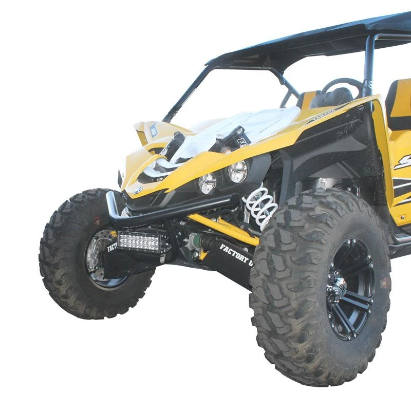 Factory UTV’s Yamaha YXZ 1000 Series bumper is constructed from steel tubing. This bumper features is a simple bolt on product with all hardware necessary included. Bumpers are Powder-coated black, mount to existing mounting locations and provide excellent protection for the front of your Yamaha YXZ 1000. Bumper can be ordered with a couple different lighting options or as a stand alone Bumper. Options included 2 different brands of LED light-bar’s with mounting tabs, mounting tabs can be used for a wide variety of bolt on accessories, from led light bars, led light pods, to horns, tools, parts and more. Front bumper assembly gives the YXZ a really nice stance and follows the vehicles lines very nicely.