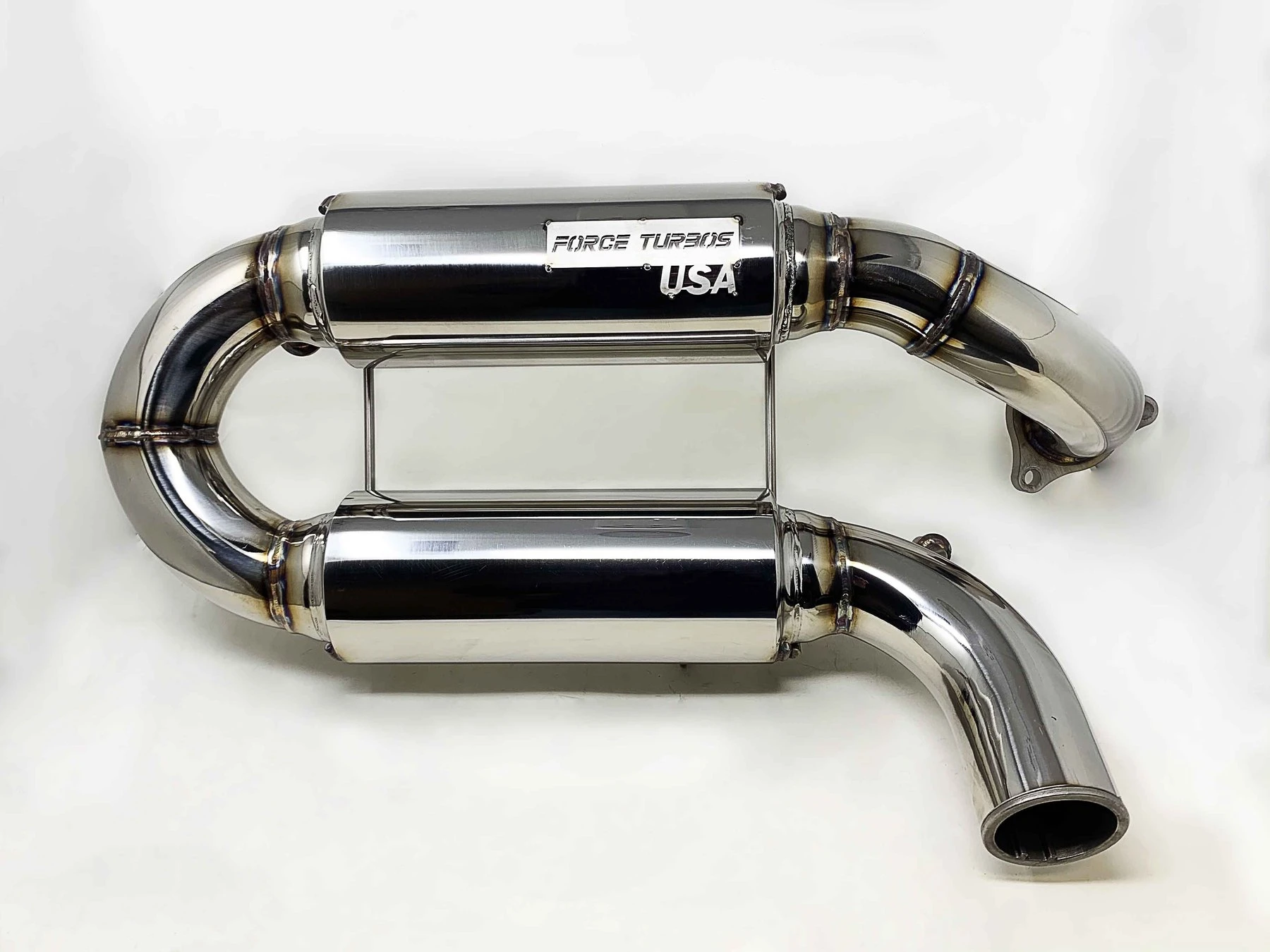 The Force Turbos Polaris RZR Untamed Exhaust is designed not only for great looks and sound but to also utilize proven performance-enhancing strategies. The initial silencer acts as an expansion chamber that increases exhaust velocity when combined with the scavenging effect of the secondary exhaust.