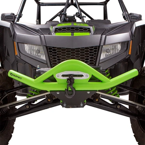 The HMF Defender HD Front Bumper for the Arctic Cat Wildcat XX is constructed from .095″ wall steel tubing and not only protects the front of the machine but also offers an integrated winch mount plate. The bumper also comes with a 3/16″ aluminum skid plate with a cutout to mount a winch fairlead. The bumper works with UTV fairleads with 6″ mounting hole spacing. LED lights may also be mounted on the bumper (see mounting options). All necessary hardware and instructions are included. Available color options will match the manufacturer’s color scheme.