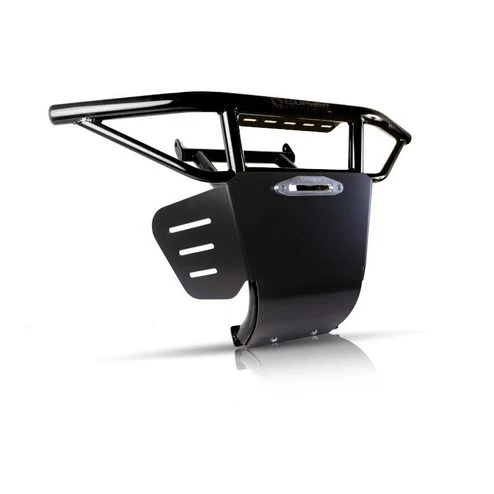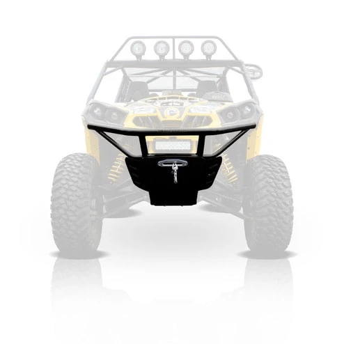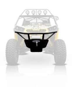 The HMF Defender HD Front Bumper for the Can-Am Commander is constructed from .095″ wall steel tubing and not only protects the front of the machine but offers an integrated winch mount plate for most winches up to 4,500lbs. Made from 1/8″ aluminum, the included skid plate protects against brush and other debris, while LED Lights and a UTV Fairlead (6″ hole spacing) can be installed for a complete setup.
