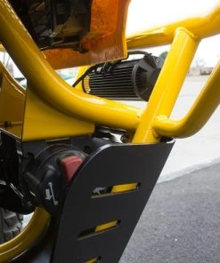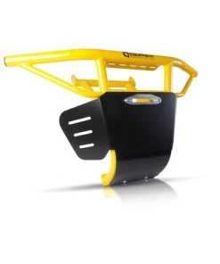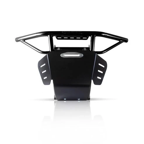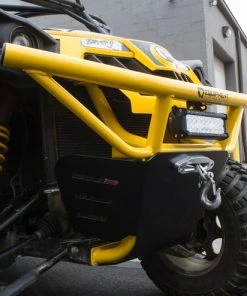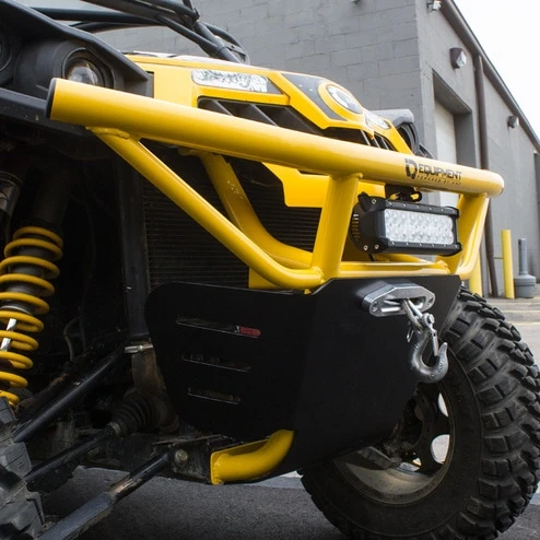 The HMF Defender HD Front Bumper for the Can-Am Commander is constructed from .095″ wall steel tubing and not only protects the front of the machine but offers an integrated winch mount plate for most winches up to 4,500lbs. Made from 1/8″ aluminum, the included skid plate protects against brush and other debris, while LED Lights and a UTV Fairlead (6″ hole spacing) can be installed for a complete setup.