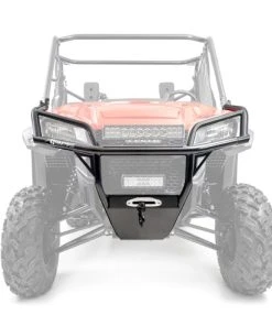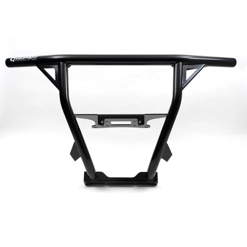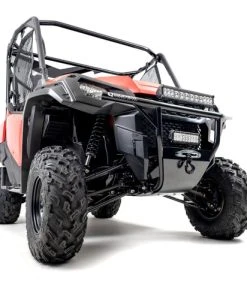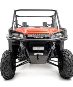 The HMF Defender HD Front Bumper for the Honda Pioneer 1000 is constructed from .095″ wall steel tubing and not only protects the front of the machine but also offers an integrated winch mount plate. The bumper also comes with a 3/16″ aluminum skid plate with a cutout to mount a winch fairlead. The bumper works with UTV fairleads with 6″ mounting hole spacing. LED lights may also be mounted on the bumper (see mounting options). All necessary hardware and instructions are included.