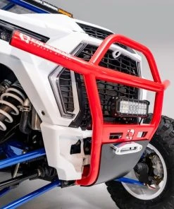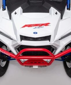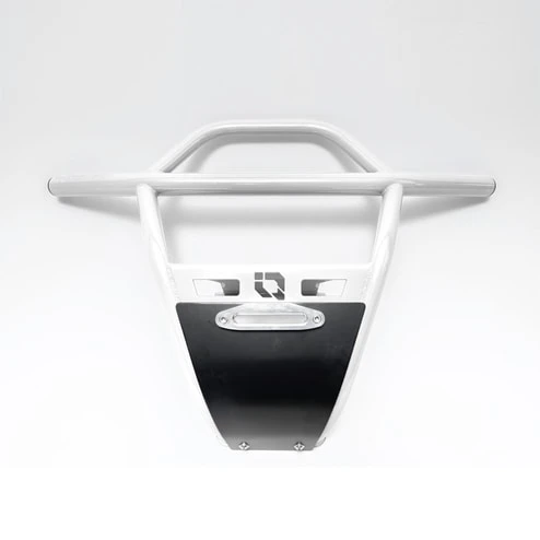 The HMF IQ Defender HD Front Bumper for the Polaris RZR XP Turbo S is built from .095″ steel tubing and offers increased protection for the front of the machine. It comes with a 3/16″ aluminum skid plate with a cut-out to mount a fairlead. The bumper works with UTV fairleads that have 6″ mounting hole spacing. LED lights and and and a UTV Fairlead can be installed on the bumper (see mounting options). The HMF IQ Defender HD Front Bumper adds increased protection and incredible looks to the front of the machine and is available in multiple colors.