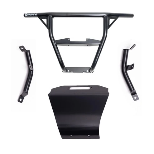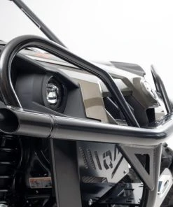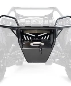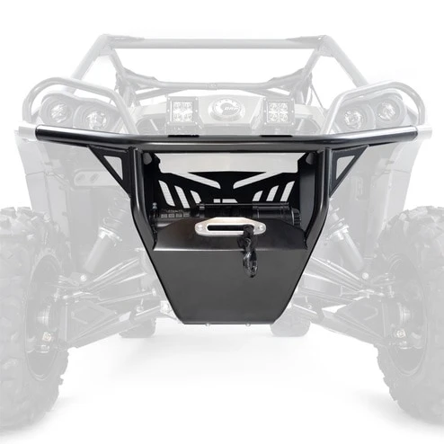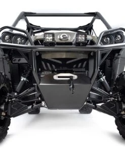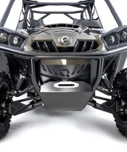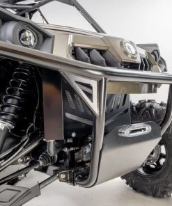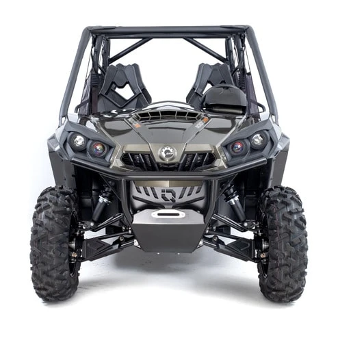 The HMF Defender HD Deluxe: Front Bumper for the Can-Am Commander is constructed from .095″ wall steel tubing and not only protects the front of the machine but offers an integrated winch mount plate for most winches up to 4,500lbs. Built from 1/8″ aluminum, the Radiator Guard (included) bolts directly to the stock radiator and protects it from debris., while LED Lights and a UTV Fairlead (6″ hole spacing) can be installed for a complete setup.