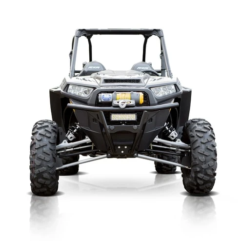 The HMF Defender HD Deluxe: Front Bumper for the Polaris General is built from .095″ steel tubing and offers an increased form of protection. The Defender Deluxe bumper can house most winches up to 4,500lbs. The bumper works with UTV Fairleads that have 6″ mounting hole spacing. LED Lights and a UTV Fairlead can be installed on the bumper, and the bumper itself adds an incredible look to the front of the machine.