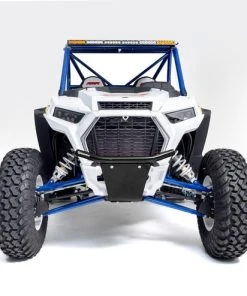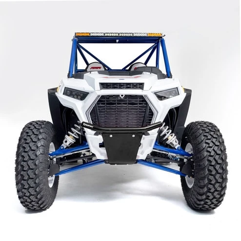 The HMF IQ Defender LT: Front Bumper for the Polaris RZR XP Turbo S is a small, durable, lightweight front bumper that’s ideal for riders looking to add front end protection without a lot of weight. Built from .095″ steel tubing, the Defender LT features a universal light bar mount on top. If you’re running a winch, the Skid Plate is available with or without Fair Lead mounts. A winch will mount in the stock Polaris mounting location and the skid plate with Fair Lead holes will fit a standard 6″ Fair Lead (sold separately). The bumper works with UTV fairleads that have 6″ mounting hole spacing.