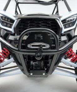 The HMF Defender U4 Front Bumper for the Kawasaki Teryx KRX 1000 is built from .095″ mandrel-bent steel tubing and not only protects the machine but also offers an integrated winch mount plate. The U4 bumper works with UTV fairleads that have 6″ mounting hole spacing and the bumper itself adds an incredible look to the front of the machine. See Winch Mount Dimensions The bumper extends only 6″ past the front fascia to keep the overall length down and will not negatively impact approach or departure angles.