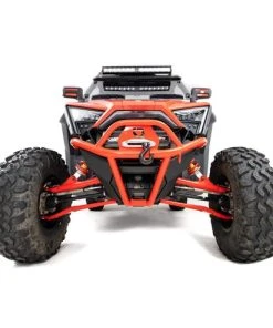 The HMF Defender U4 Front Bumper for the Polaris RZR Pro XP is built from .095″ steel tubing and not only protects the machine but also offers an integrated winch mount plate. The U4 bumper works with UTV fairleads that have 6″ mounting hole spacing and the bumper itself adds an incredible look to the front of the machine. See Winch Mount Dimensions
