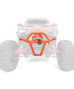 The HMF Defender U4 Front Bumper for the Polaris RZR Pro XP is built from .095″ steel tubing and not only protects the machine but also offers an integrated winch mount plate. The U4 bumper works with UTV fairleads that have 6″ mounting hole spacing and the bumper itself adds an incredible look to the front of the machine. See Winch Mount Dimensions