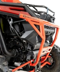 The HMF Defender Rear Bumper for the Polaris RZR Pro XP is constructed from .095″ wall steel tubing and powder coated for the ultimate protection on the rear of the Polaris RZR Pro XP. The rear bumper easily mounts to the frame of the vehicle and provides the strength and protection to handle even the most demanding situations. It has been specifically designed to work with both stock and HMF exhaust systems and the color options available will match the manufacturer’s scheme.