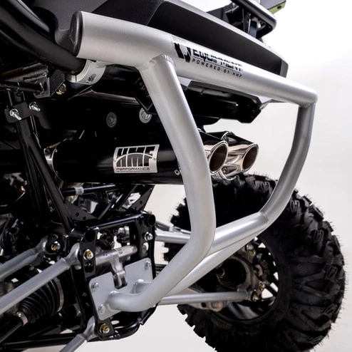 The 4″ aluminum Performance Series picks up 9 hp and 4 ft-lbs of torque while reducing the weight of the entire exhaust system by 10 lbs. The Performance and Titan XL Full systems are 6 dB louder than stock at idle, while the Titan QS is 4 dB louder than stock at idle. The dual center exit design protects the entire system within the frame of the vehicle and produces an amazing sound and look.