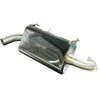 The 4” diameter aluminum silencers and stainless steel downpipe replace the entire exhaust system from the turbo back. The downpipe includes a flex joint and custom laser-cut heatshield that mounts to the downpipe.