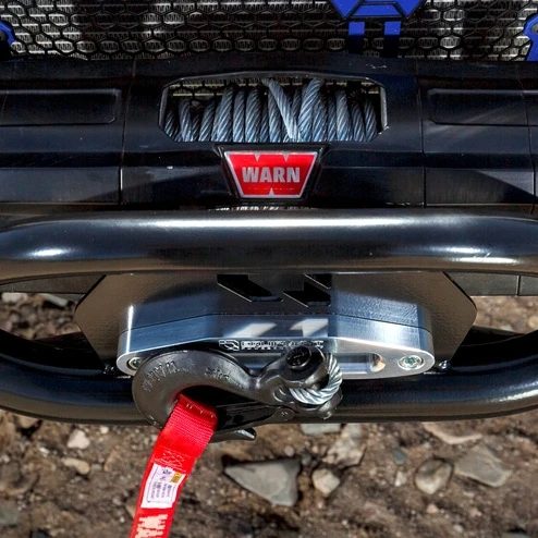 The HMF IQ Equipment UTV Fairlead is designed to fit bumpers with standard 6″ bolt spacing for UTVs, like our line of Defender Front Bumpers. CNC milled from a solid billet of 5/8″ 6061 aluminum, the fairlead features an engraved HMF Equipment logo on the front and is intended for use with synthetic winch ropes.