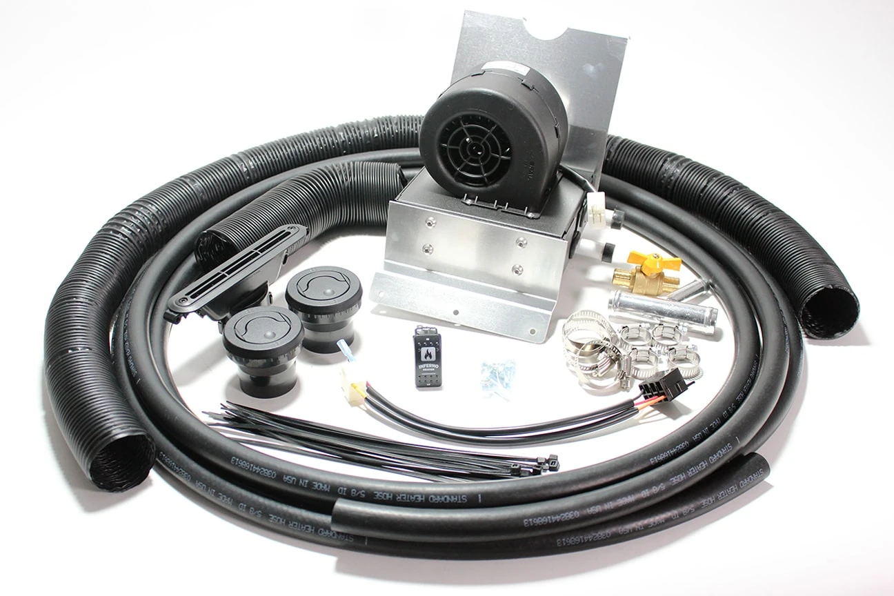 Includes all necessary components: heater hose, hose splicers, hose clamps, mounting brackets, defrost and floor louvers, ductwork & wiring.