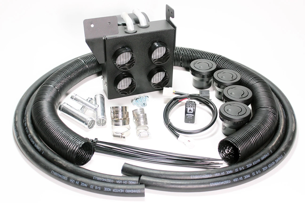 Includes all necessary components: heater hose, hose splicers, hose clamps, mounting brackets, defrost and floor louvers, ductwork & wiring.