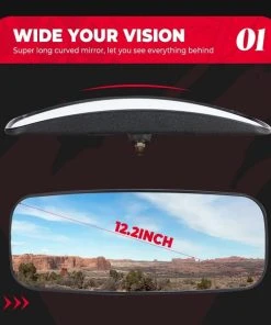 11.8β³x4.3β³ convex utv rearview mirror, provides a super wide field of vision for you to easily to prevent blind spots and some traffic accidents, which can improve your safety greatly. The design of the utv rearview mirror back adds stress points to the mirror, making it stronger.