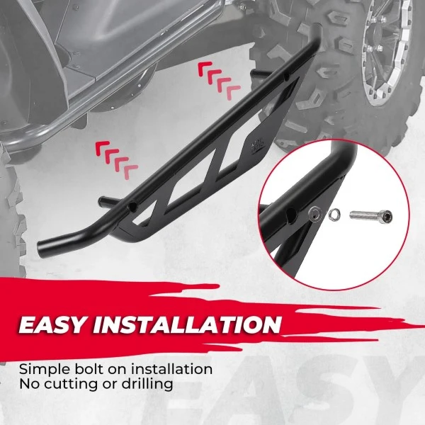 Durable steel tubes could be mounted on the rocker panels of your side-by-side quickly and easily, and they protect against impact with rocks and other off-road obstacles. We backup our products with a premium 12-month warranty for any purchase through Amazon, and you can reach out to us whenever you have a problem, day or night.