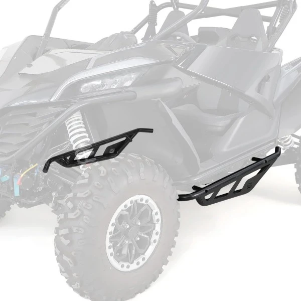 This 950 rock sliders design with the full stock ground clearance. Don’t worry about the rock sliders extending below the bottom of the ZForce 950. They are far enough to protect against obstacles without interfering with handling.