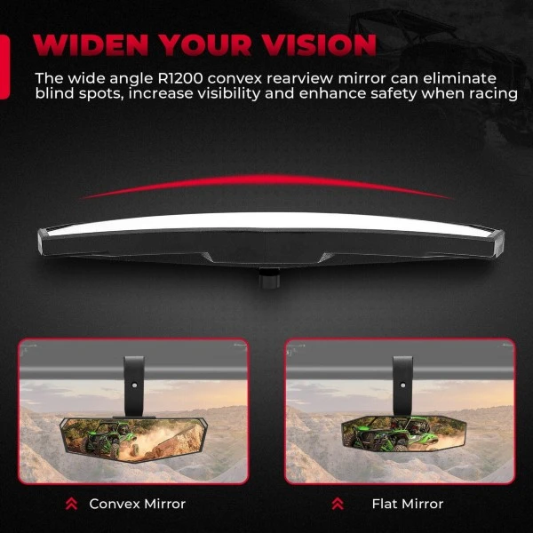 Convex Mirror & High-Definition Image: The curvature of the high-definition UTV convex mirror real glass lens is R1200, providing you with undistorted and ultra-clear images, helping to reduce blind spots and ensuring your driving safety.