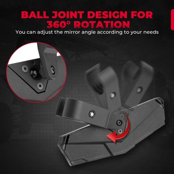Newest Pivot Ball Glass: Non-slip ball joint, 360-degree rotation to adjust your view angle. This UTV mirror can gives good angle of rear view.