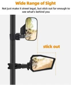 Automatically fold back when hit by branches or obstacles to prevent the SxS mirrors from damage. Just like the car mirrors, you can get a minor adjustment when you push the mirror glass and the aluminum mounting clamp is designed for long-term use, and the long mirror arm design will also stick out far enough for you to get the maximum view.