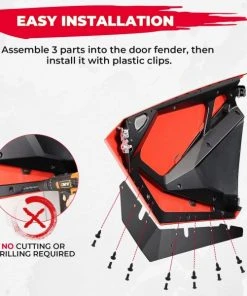 You just need to assemble 3 parts into the door fender, then install it with plastic clips. Start your journey, by preventing mud, water, sand, and stones from soiling clothes.