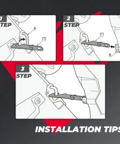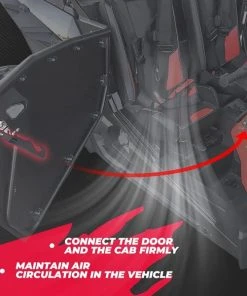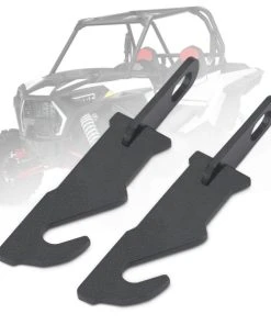 Hook the hook of UTV door latches to the cab. Click the hole of the door latches into the vehicle door latches. Quickly complete the installation without tool.