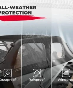 KEMIMOTO soft top door skin is upgraded according to the suggestion of our distinguished customer. KEMIMOTO cab enclosure can protect from sun, rain and dust in summer and it also can prevent wind, snow and cold in winter. When ventilation is required, the transparent film can be rolled up and stored.