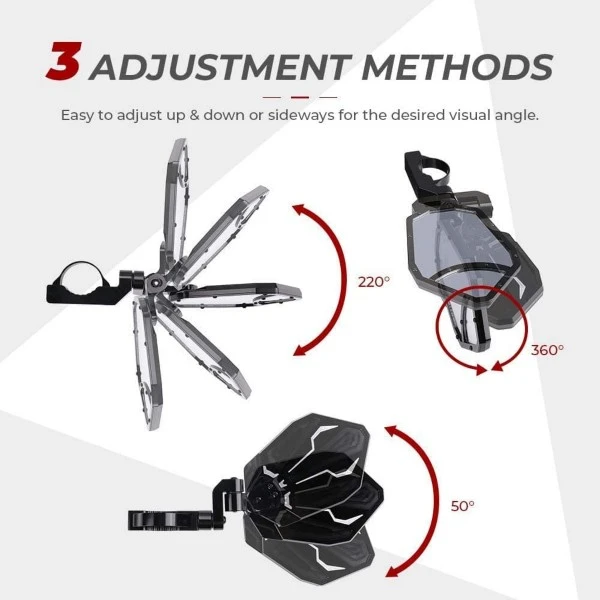 Adjust the Angle You Want: This kemimoto sxs mirrors have 3 adjustable, you can easily find a setting that works for you, with any cage, makes the field of view more open. The rear-view mirrors have a small convex mirror, which can maximize your view with wide angle in the vehicle.