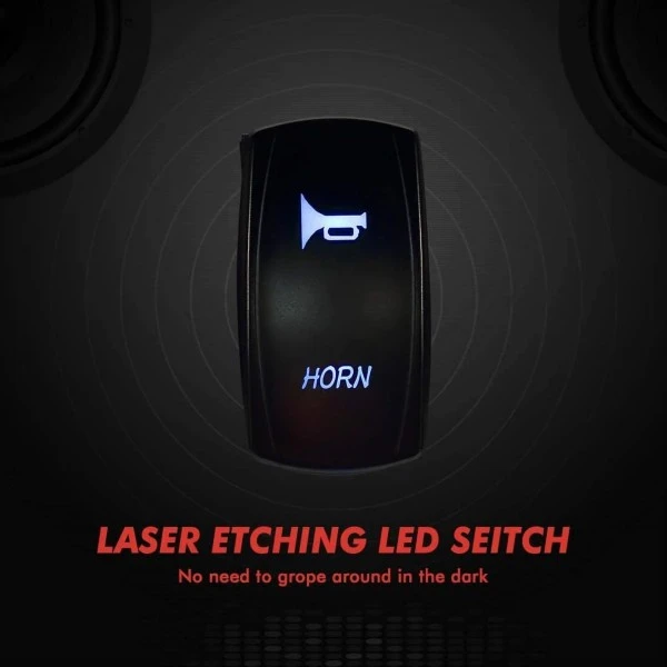 Switch: Electric Horn Kit with button match the rocker switch, flexible switch, rocker switch, press and automatically up, laser etching LED switch, no need to grope around in the dark.