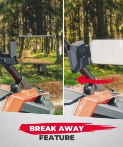 You can adjust the UTV side mirror horizontally or vertically for desired visual angle. With a “breakaway” feature., when riding the trails, they fold away if they encounter a branch but are sturdy enough for high speed on the road—No vibration at idle.